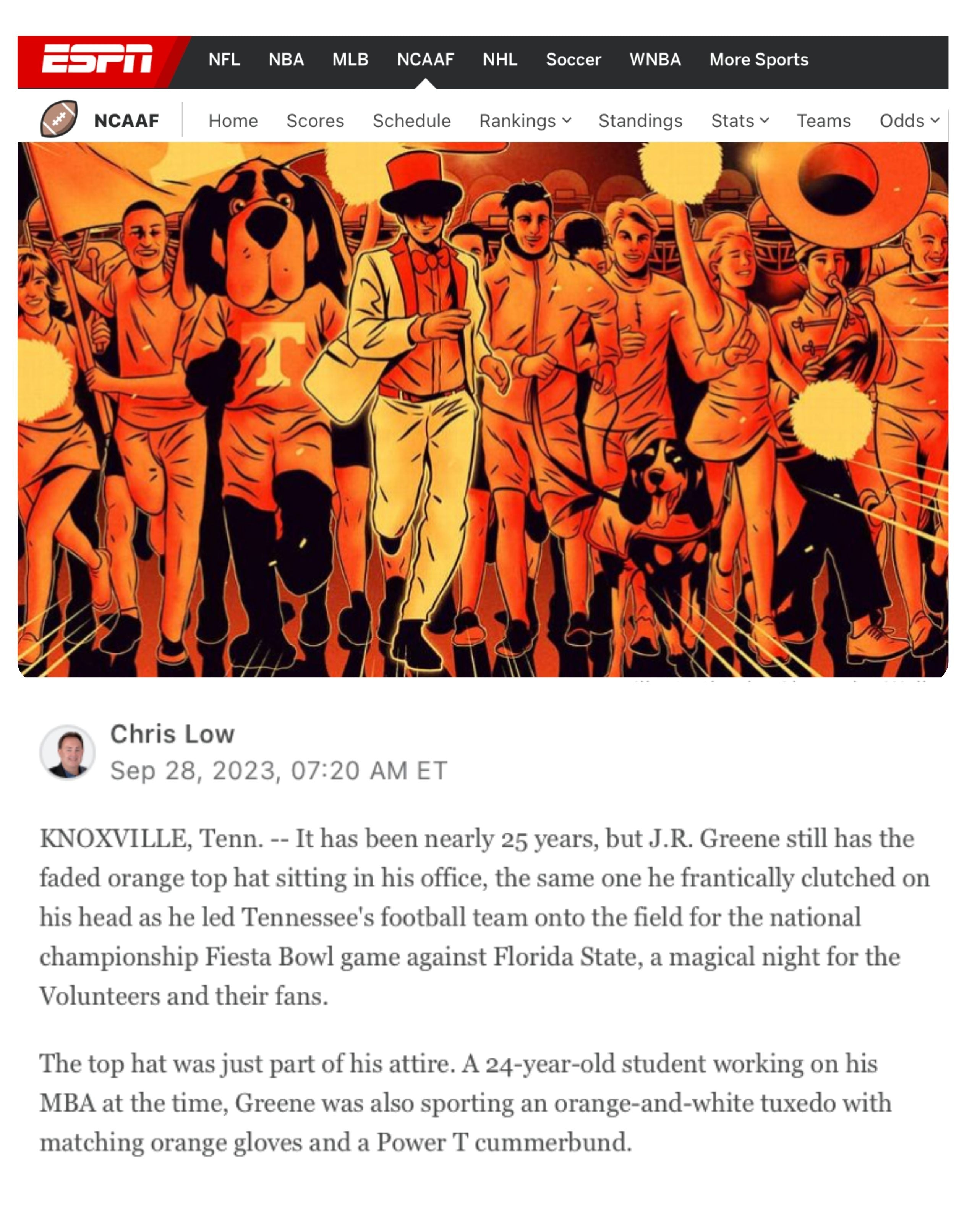 You could say I was destined for it — leading the Tennessee Volunteers onto the field before kickoff of the 1999 Fiesta Bowl, decked out in a hand-colored tuxedo and dyed orange hat. The Big Orange Tux wasn’t just an outfit; it was a family legacy in motion.